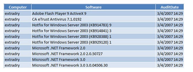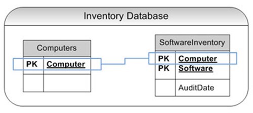 - A database is used to drive the computers polled as well as store the output. The database table is very flat (one table) with 2 fields: ‘Computer’ and ‘Software’. For large amounts of data, this will need to be normalized.